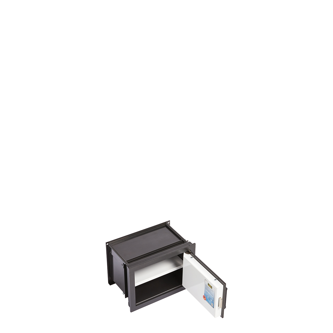 Die Wandtresor-Serie mit variabler Tiefe – optimale Raumausnutzung durch verstellbaren Tresorkorpus. Tür doppelwandig. Türplatte 7 mm SM-Stahl. Wirkungsvolle Vierkant-Verriegelung. Durchgehende Hintergreifschiene an der Bandseite. Tür mit Feuerschutzmaterial nach DIN 4102-A1. Korpus mit umlaufendem Feuerfalz. Lackierung: Alteisen.